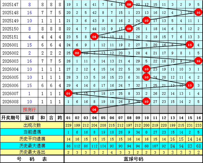 连号分析:上期红球没有开出连号,最近5期开出3期连号,最近10期包含连号的奖号有6期,连号走势较冷,本期关注连号出现,参考连号04、05。